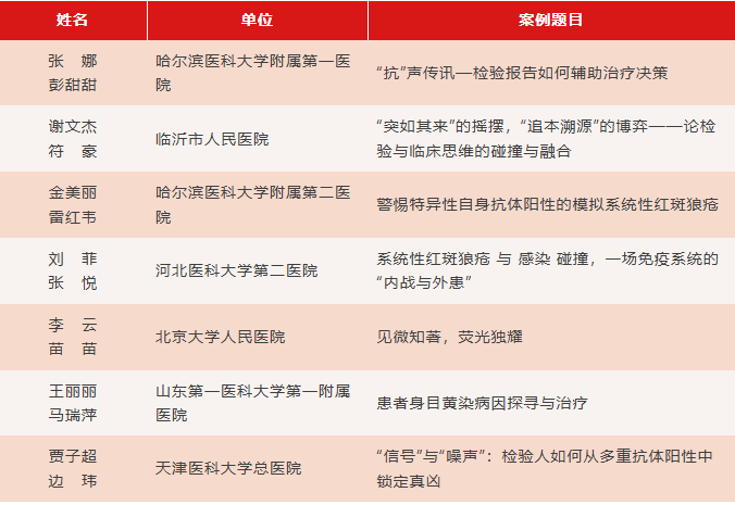 隨著北區(qū)活動的結(jié)束,本屆自身免疫實驗室診斷案例展演區(qū)域階段已全部完成。感謝廣大同仁對本活動的支持與厚愛。各區(qū)域脫穎而出的優(yōu)秀案例將于今年10月會師全國展示舞臺互鑒交流,敬請關(guān)注!